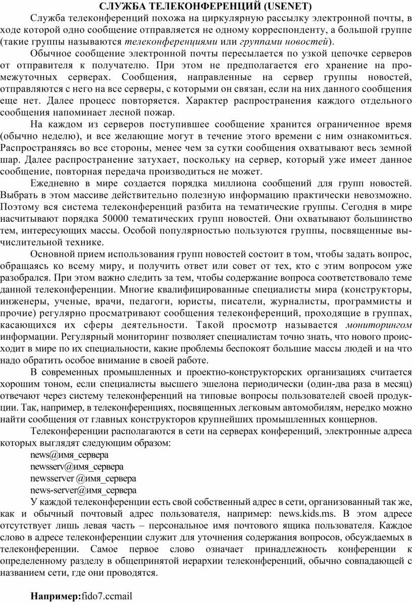 СЛУЖБА ТЕЛЕКОНФЕРЕНЦИЙ (USENET)
