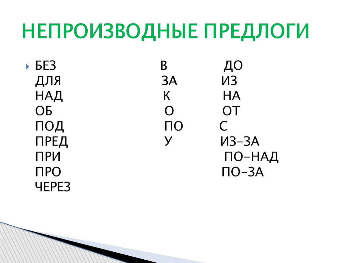 НЕПРОИЗВОДНЫЕ ПРЕДЛОГИ