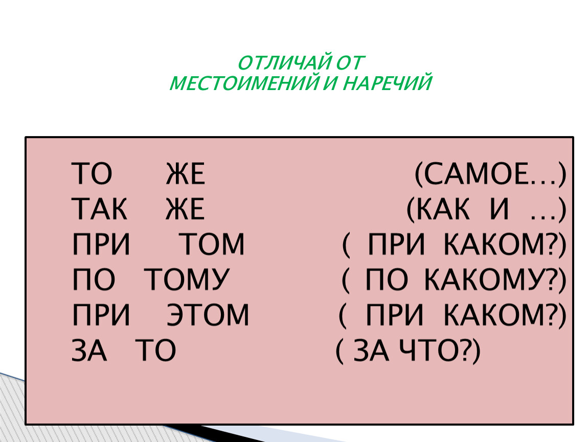 ОТЛИЧАЙ ОТ МЕСТОИМЕНИЙ И НАРЕЧИЙ