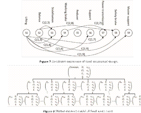 Research on product conceptual design is booming with regard to the direct influence of the concept on the quality of the final product, and the vast majority of researchers agree that how to scientifically evaluate candidate concepts and how to express a product concept with an accurate model are two vital tasks in conceptual design [1]. Hence, advanced models and effective evaluation systems have been intensively addressed by researchers worldwide. Danni et al. [2] presented an evaluation and selection method composed of three modules: data mining, concept reconstruction, and decision support, to improve the efficiency of concept review and evaluation. Sun et al. [3] established an effective conceptual model for new-product concept development from two theoretical backgrounds about organizational learning, and the model was applied to the design of a large scramjet with satisfying results. Wang et al. [4] proposed an optimization decision model for product conceptual design to help enterprises select key technical characteristics under the condition that cost and time maximally meet customer requirements. Christoph F. et al. [5] presented methodology integration with a knowledge model for conceptual design in accordance with model-driven engineering, and the work extended Gero’s Function-Behavior-Structure model. Based on Bunge’s Scientific Ontology, Chen et al. [6] developed an explicit and complete conceptual foundation for the establishment of a new conceptual design model. Varun Tiwari et al. [7] proposed a novel way of performing design-concept evaluations, where instead of considering the cost and benefit characteristics of the design criteria, the work identifies the best concept that satisfies constraints imposed by the team of designers, as well as fulfilling as many of a customer’s preferences as possible. To obtain the best comprehensive performance of mechanical products, Wang et al. [8] established an evaluation model for product