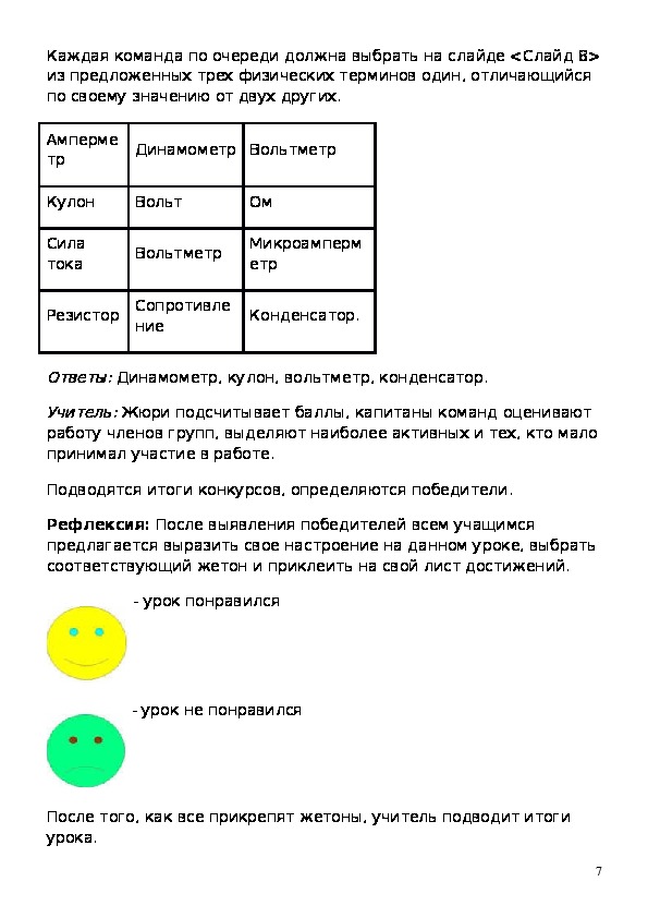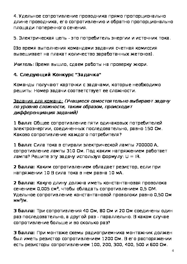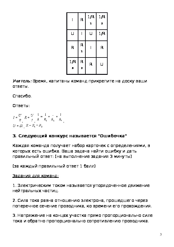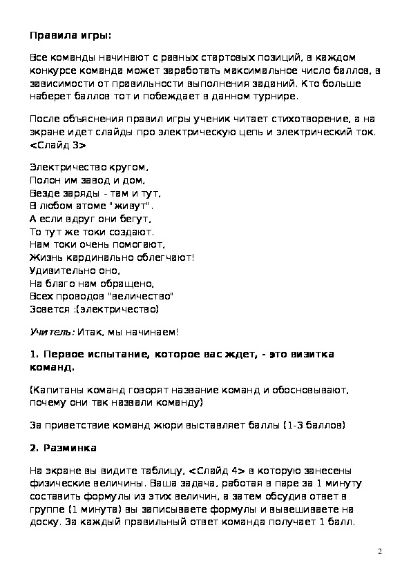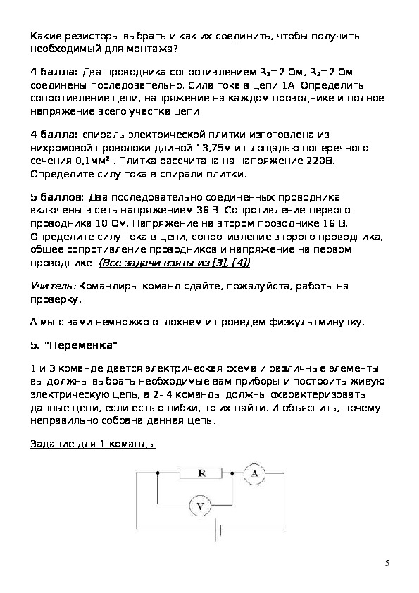 электрическую цепь, а 2- 4 команды должны охарактеризовать