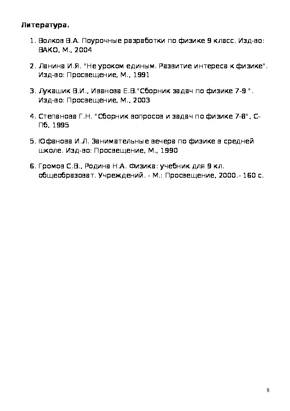 2. Ланина И.Я. "Не уроком единым. Развитие интереса к физике".