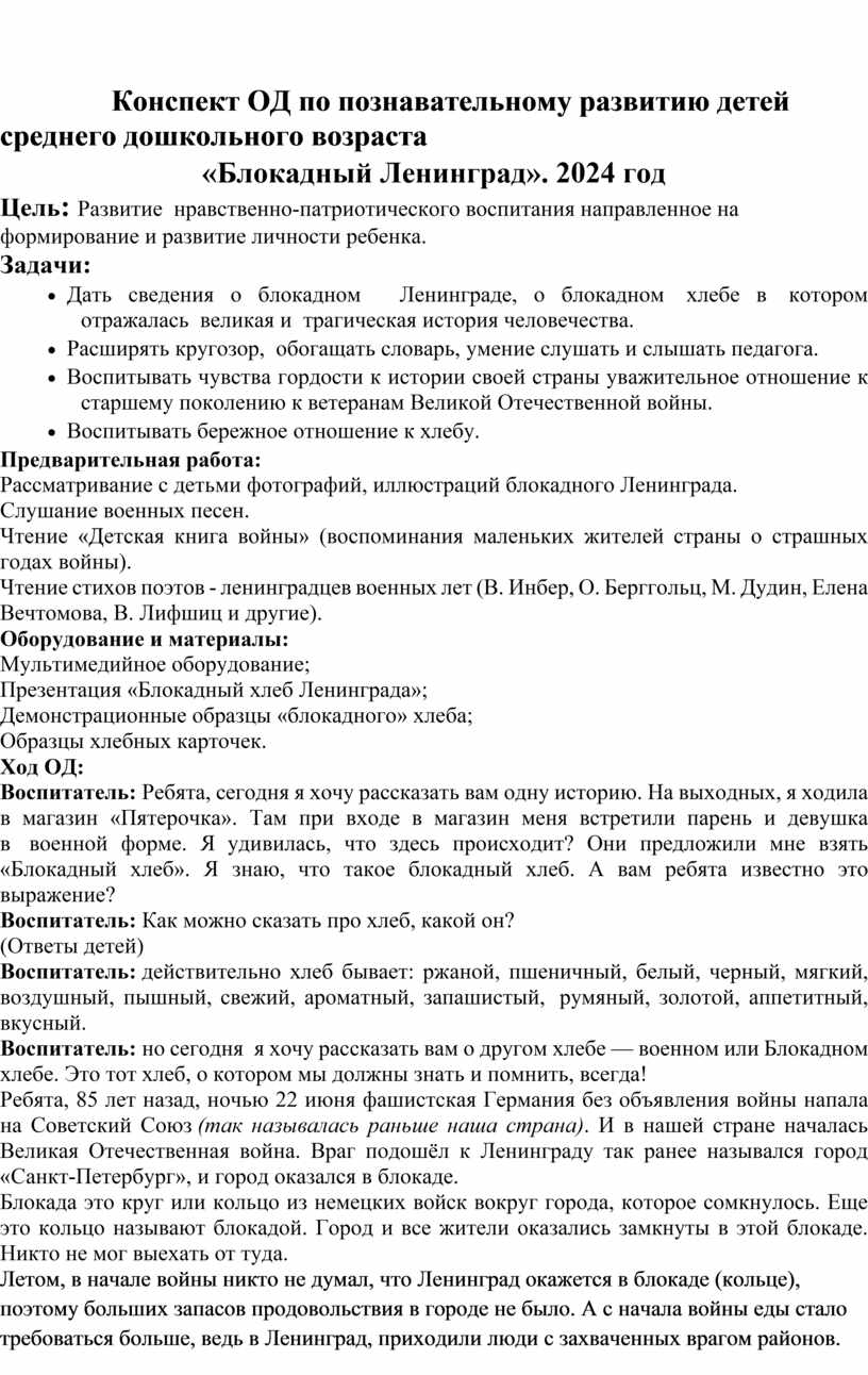 Воспитатель: Ребята, сегодня я хочу рассказать вам одну историю. На выходных, я ходила в магазин «Пятерочка». Там при входе в магазин меня встретили парень и девушка в военной форме. Я удивилась, что здесь происходит? Они предложили мне взять «Блокадный хлеб». Я знаю, что такое блокадный хлеб. А вам ребята известно это выражение?