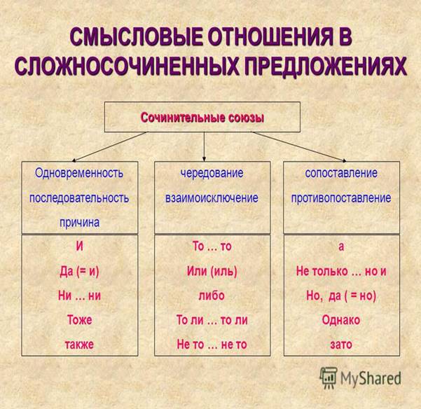 Тема урока: Виды сложносочинённых предложений. Смысловые отношения между частями сложносочинённого предложения. Практикум