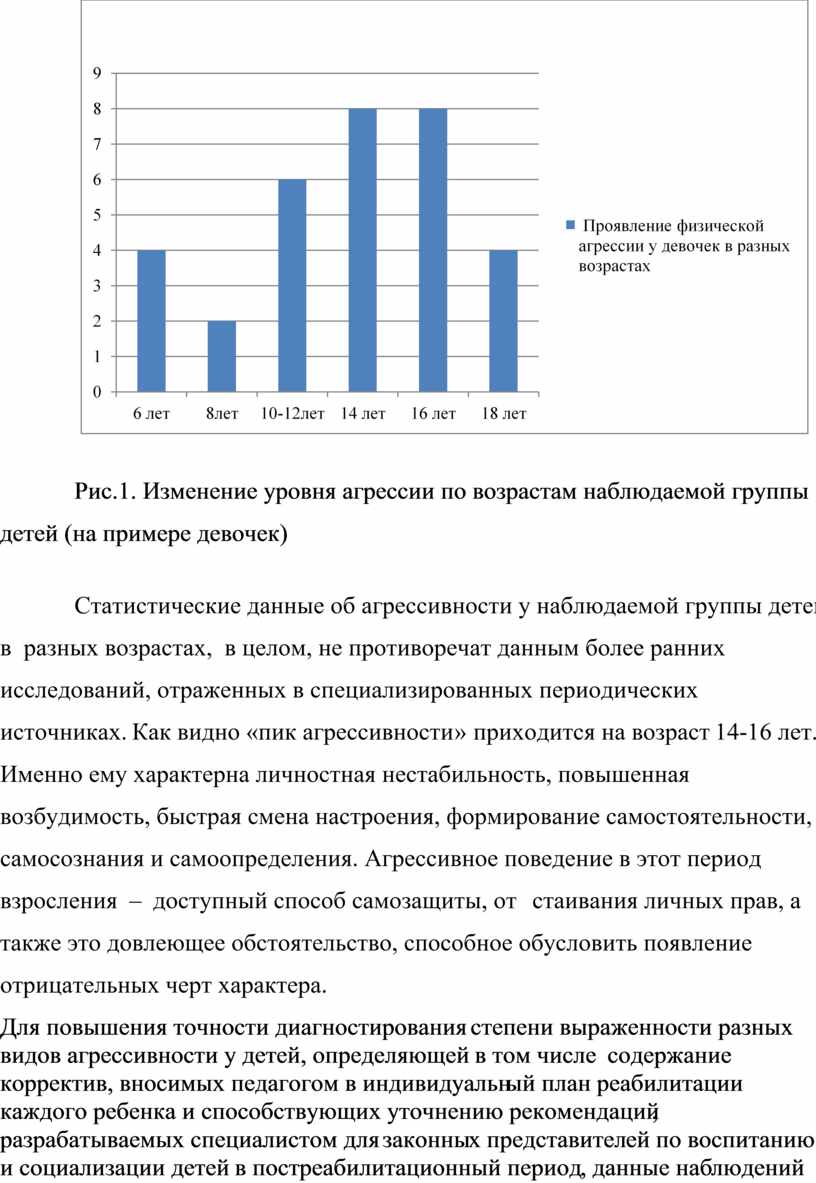 При исследовнии влияния возраста детей на степень проявления у них агрессии было установлено, что внутри подросткового возраста, как у мальчиков, так и у девочек, существуют возрастные периоды с более высоким и более низким уровнем проявления агрессивного поведения.