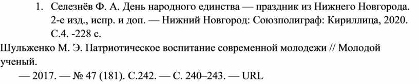 3. Селезнёв Ф. А. День народного единства — праздник из Нижнего Новгорода. 2-е изд., испр. и доп. — Нижний Новгород: Союзполиграф: Кириллица, 2020. С.4. -228 с.