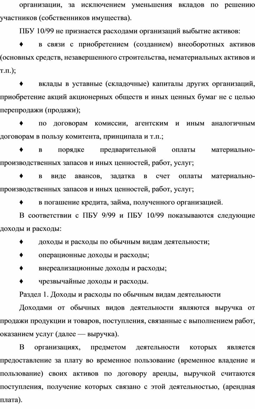ПБУ 10/99 не признается расходами организаций выбытие активов: