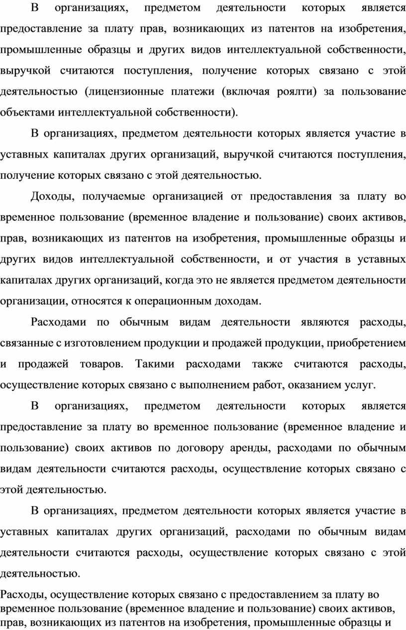 В организациях, предметом деятельности которых является предоставление за плату во временное пользование (временное владение и пользование) своих активов по договору аренды, расходами по обычным видам деятельности считаются расходы, осуществление которых связано с этой деятельностью.