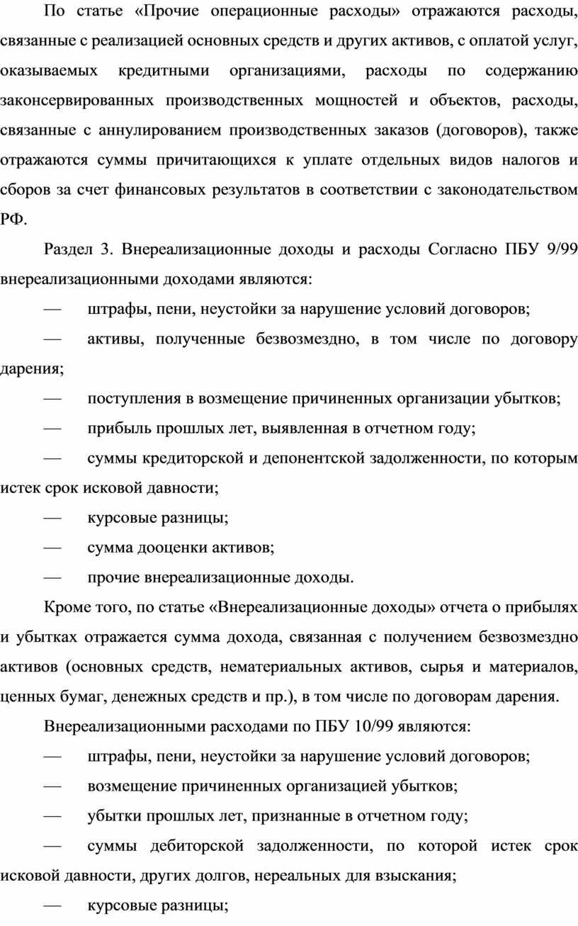 Раздел 3. Внереализационные доходы и расходы Согласно ПБУ 9/99 внереализационными доходами являются: