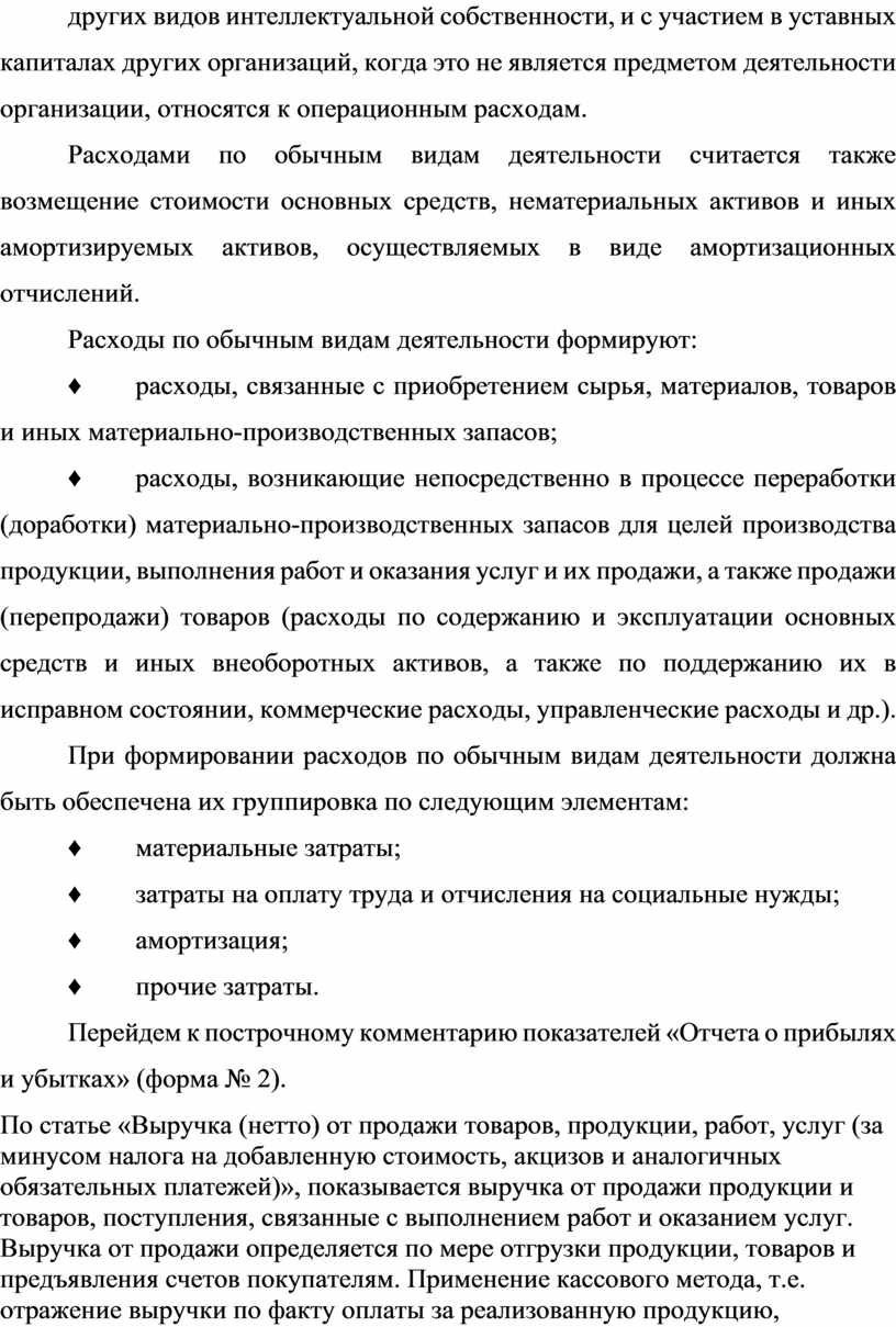 Перейдем к построчному комментарию показателей «Отчета о прибылях и убытках» (форма № 2).