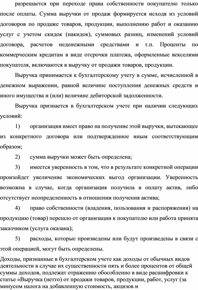 Выручка признается в бухгалтерском учете при наличии следующих условий: