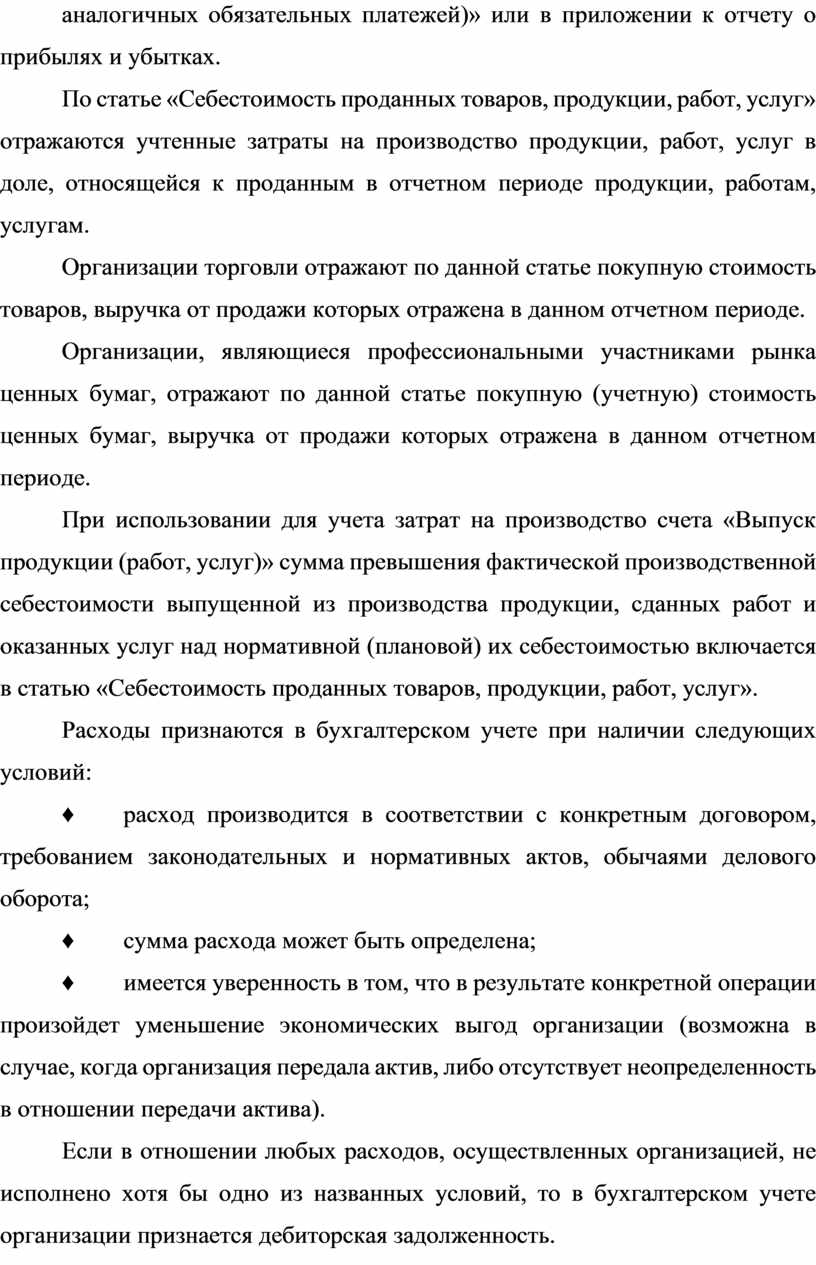 Организации, являющиеся профессиональными участниками рынка ценных бумаг, отражают по данной статье покупную (учетную) стоимость ценных бумаг, выручка от продажи которых отражена в данном отчетном периоде.