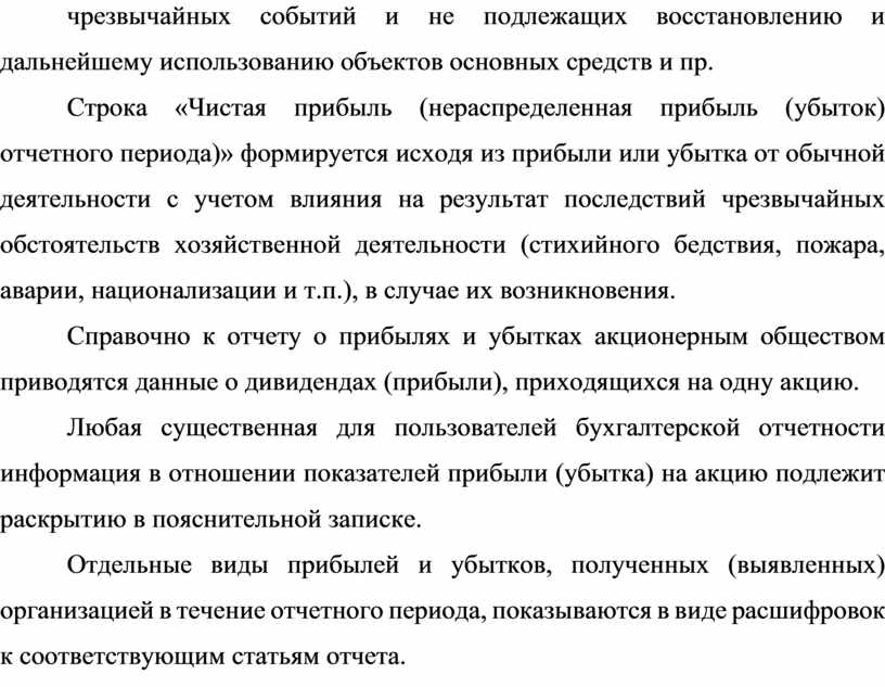 Любая существенная для пользователей бухгалтерской отчетности информация в отношении показателей прибыли (убытка) на акцию подлежит раскрытию в пояснительной записке.