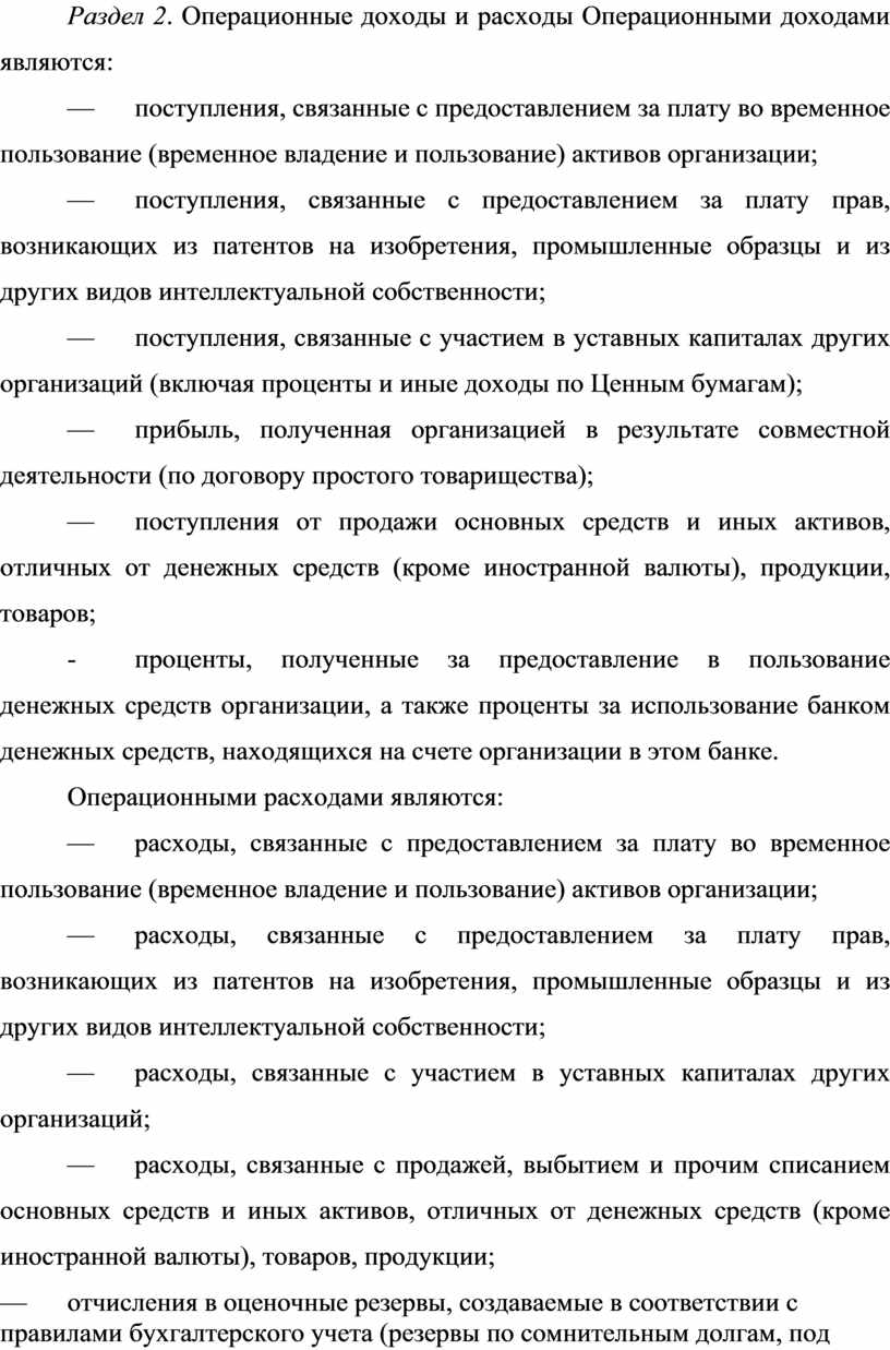 Раздел 2. Операционные доходы и расходы Операционными доходами являются: