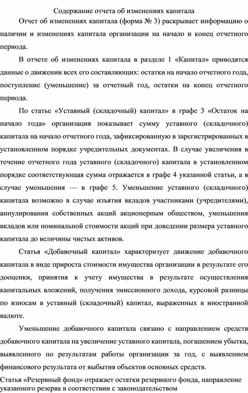 Содержание отчета об изменениях капитала