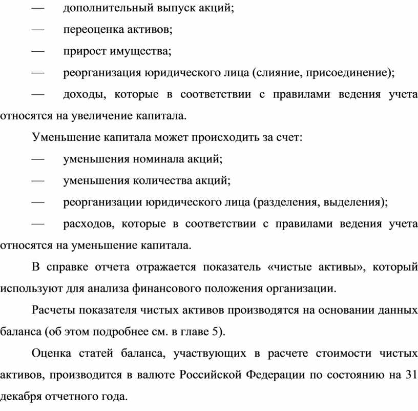 По статье «Уставный (складочный) капитал» в графе 3 «Остаток на начало года» организация показывает сумму уставного (складочного) капитала на начало отчетного года, зафиксированную в зарегистрированных в установленном порядке учредительных документах. В случае увеличения в течение отчетного года уставного (складочного) капитала в установленном порядке соответствующая сумма отражается в графе 4 указанной статьи, а в случае уменьшения — в графе 5. Уменьшение уставного (складочного) капитала возможно в случае изъятия вкладов участниками (учредителями), аннулирования собственных акций акционерным обществом, уменьшения вкладов или номинальной стоимости акций при доведении размера уставного капитала до величины чистых активов.