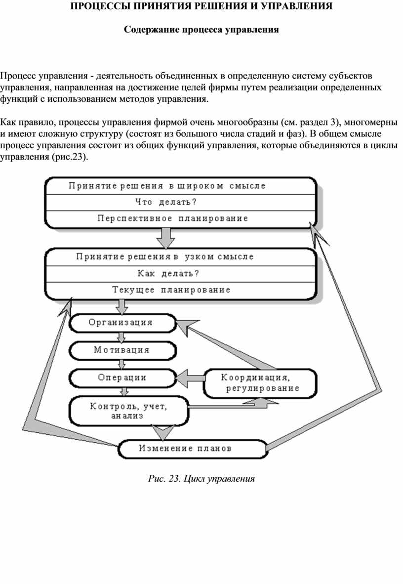 ПРОЦЕССЫ ПРИНЯТИЯ РЕШЕНИЯ И УПРАВЛЕНИЯ