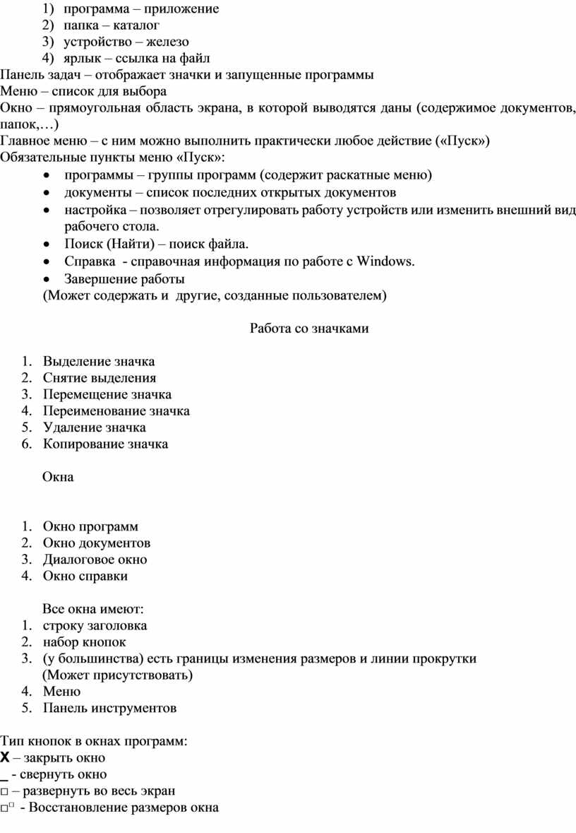 Окно – прямоугольная область экрана, в которой выводятся даны (содержимое документов, папок,…)