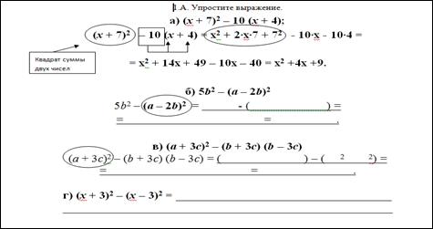 Раздел 7.3ВФормулы сокращённого умножения