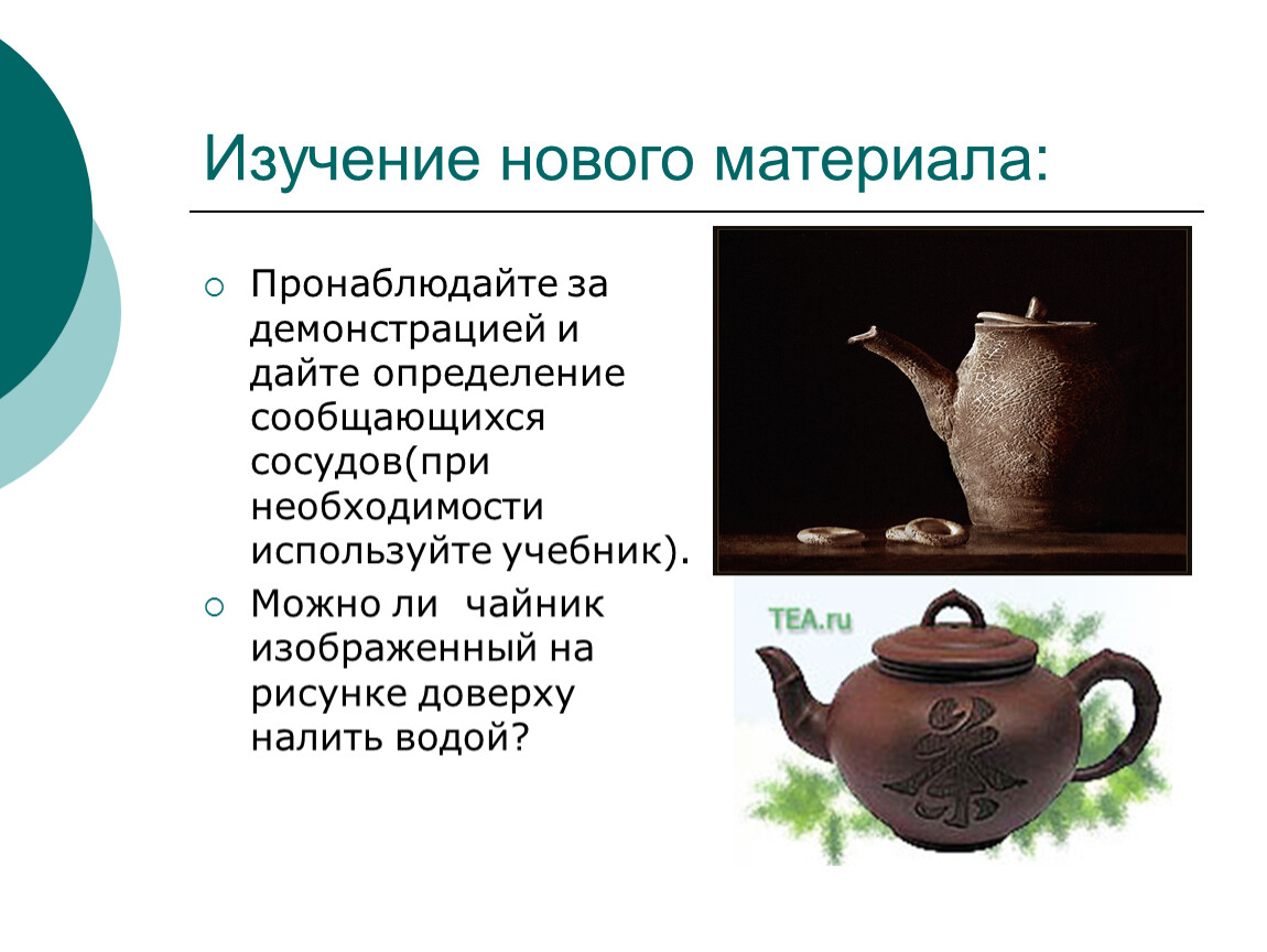 Пронаблюдайте за демонстрацией и дайте определение сообщающихся сосудов(при необходимости используйте учебник).