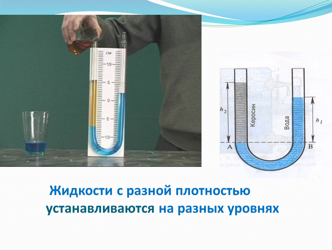 При равенстве давлений высота столба жидкости с большей плотностью будет меньше высоты столба жидкости с меньшей плотностью.