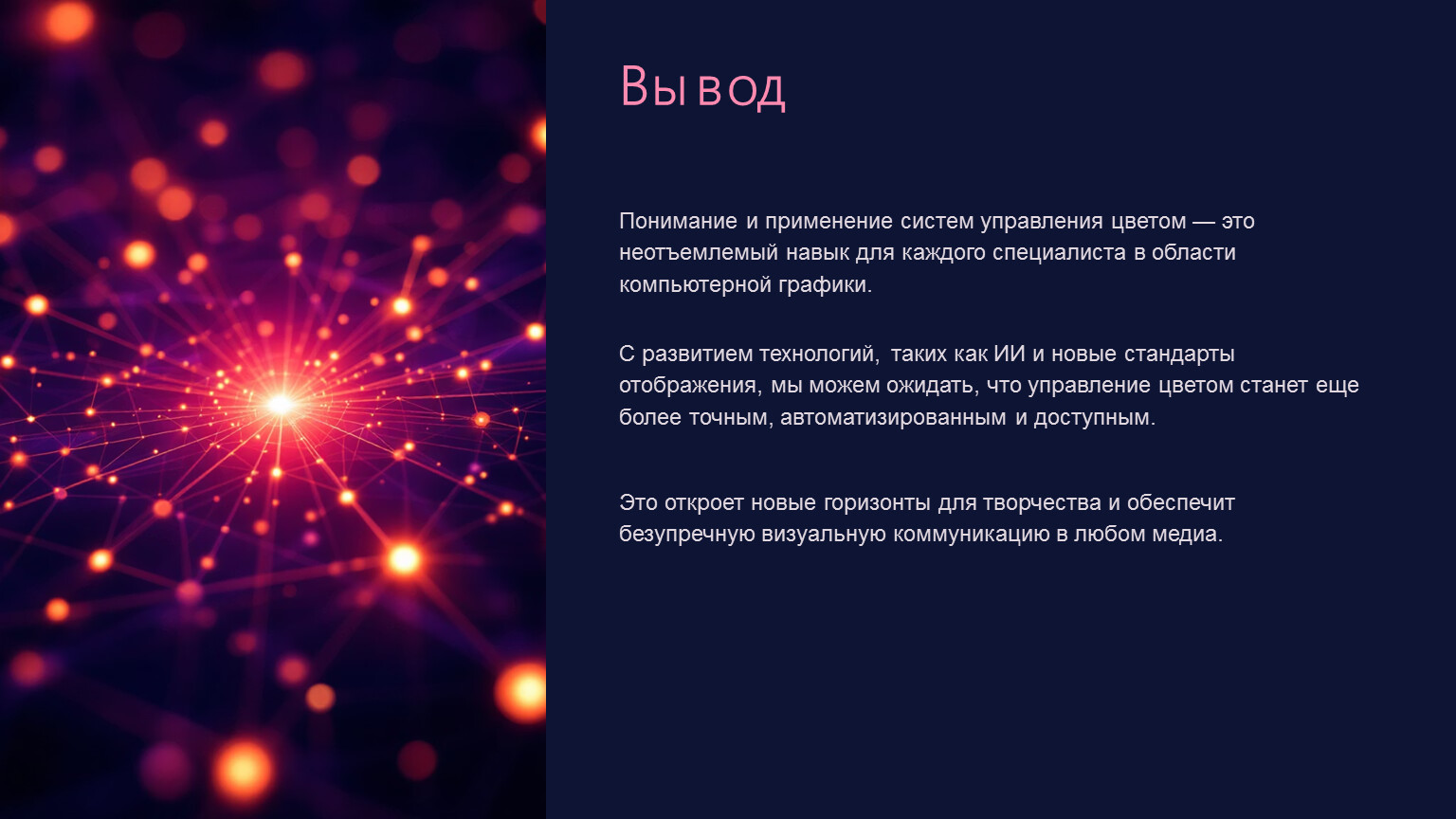 С развитием технологий, таких как ИИ и новые стандарты отображения, мы можем ожидать, что управление цветом станет еще более точным, автоматизированным и доступным.
