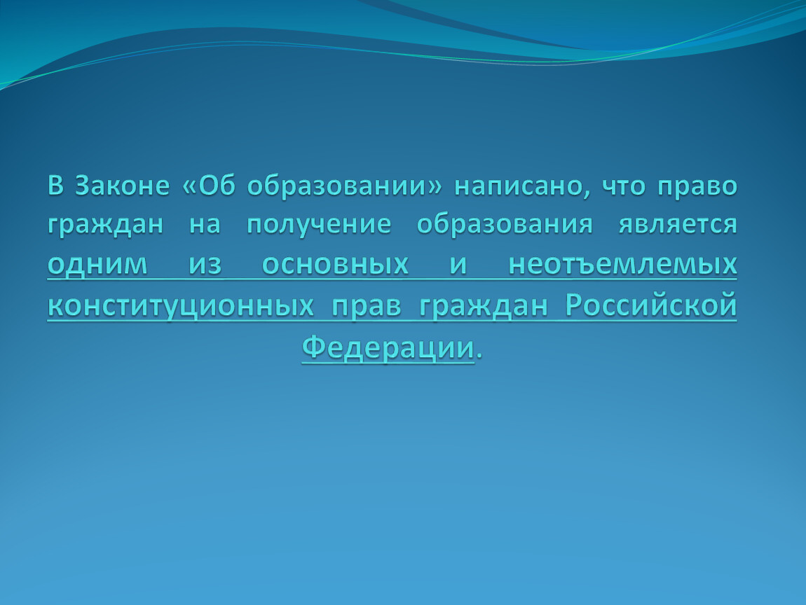 В Законе «Об образовании» написано, что право граждан на получение образования является одним из основных и неотъемлемых конституционных прав граждан Российской Федерации.