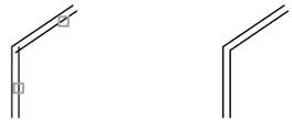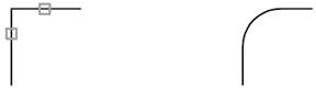 два объекта пересекаются под острым углом, как показано ниже на рисунке. Построения дуги при этом не происходит.