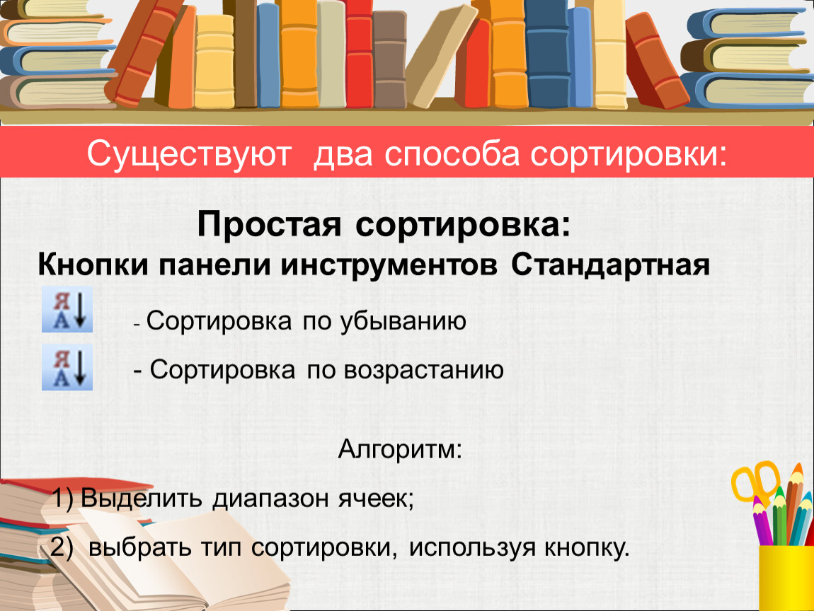 Существуют два способа сортировки:
