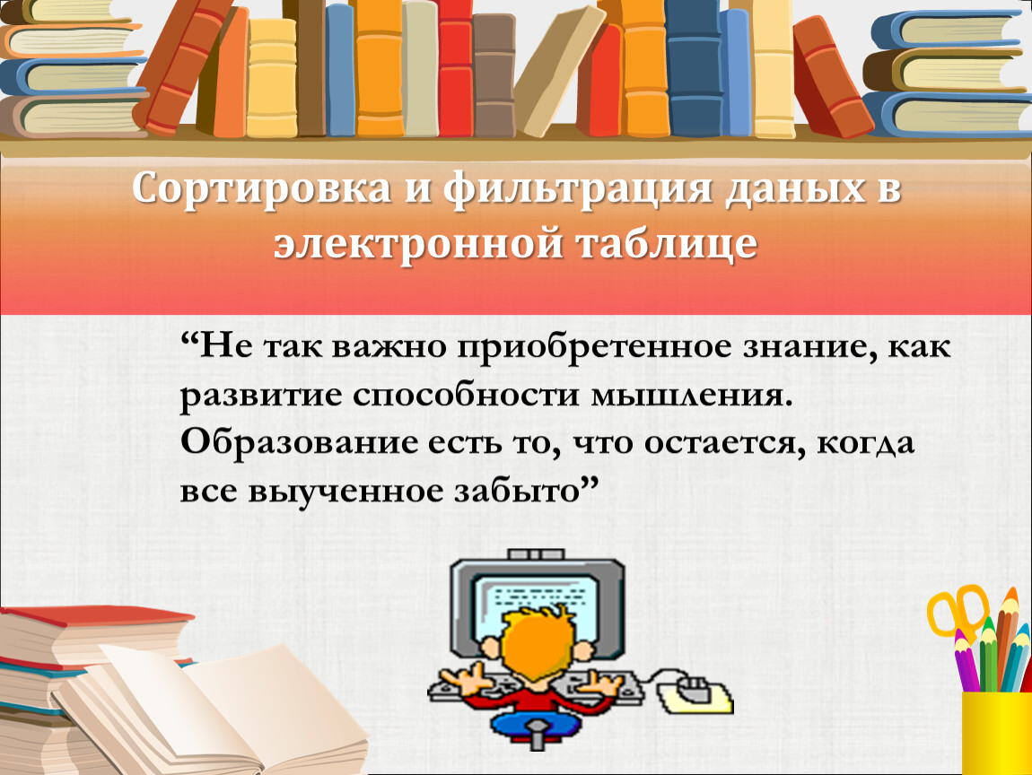 Сортировка и фильтрация даных в электронной таблице