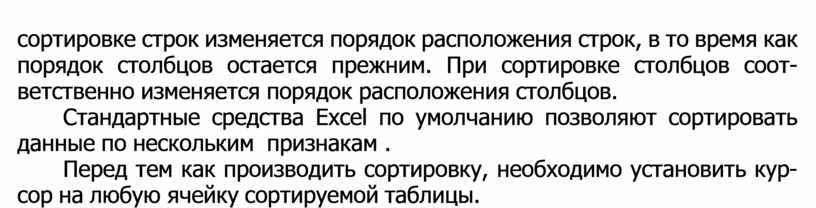 Перед тем как производить сортировку, необходимо установить кур- сор на любую ячейку сортируемой таблицы.