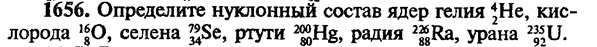 Ответ. 2 протона и 2 нейтрона, 8 протонов и 8 нейтронов, 34 протона и 45 нейтронов, 80 протонов и 120 нейтронов, 88 протонов и 138 нейтронов, 92 протона и 143 нейтрона.