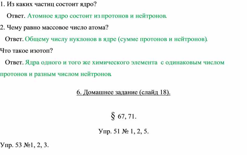 Ответ. Атомное ядро состоит из протонов и нейтронов.