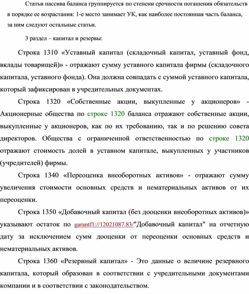 Строка 1350 «Добавочный капитал (без дооценки внеоборотных активов)» указывают остаток по garantf1://12021087.83/"Добавочный капитал" на отчетную дату за исключением сумм дооценки от переоценки основных средств и нематериальных активов.