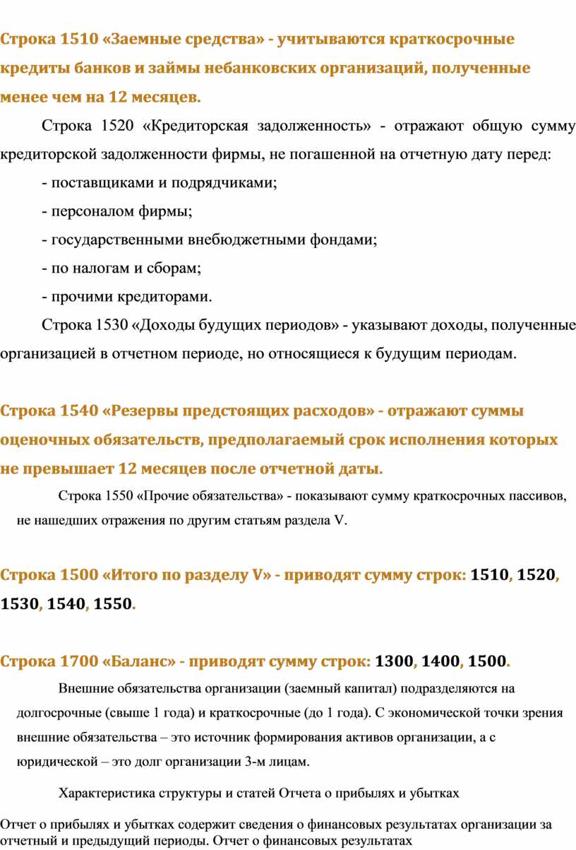 Строка 1550 «Прочие обязательства» - показывают сумму краткосрочных пассивов, не нашедших отражения по другим статьям раздела V.