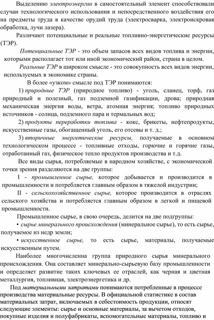 Все материальные ресурсы, используемые в народнохозяйственном комплексе в качестве предметов труда, условно подразделяются на сырьевые и топливно-энергетические.