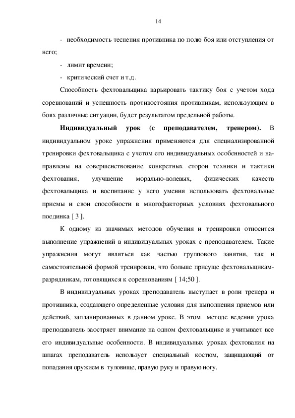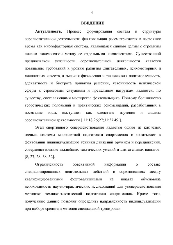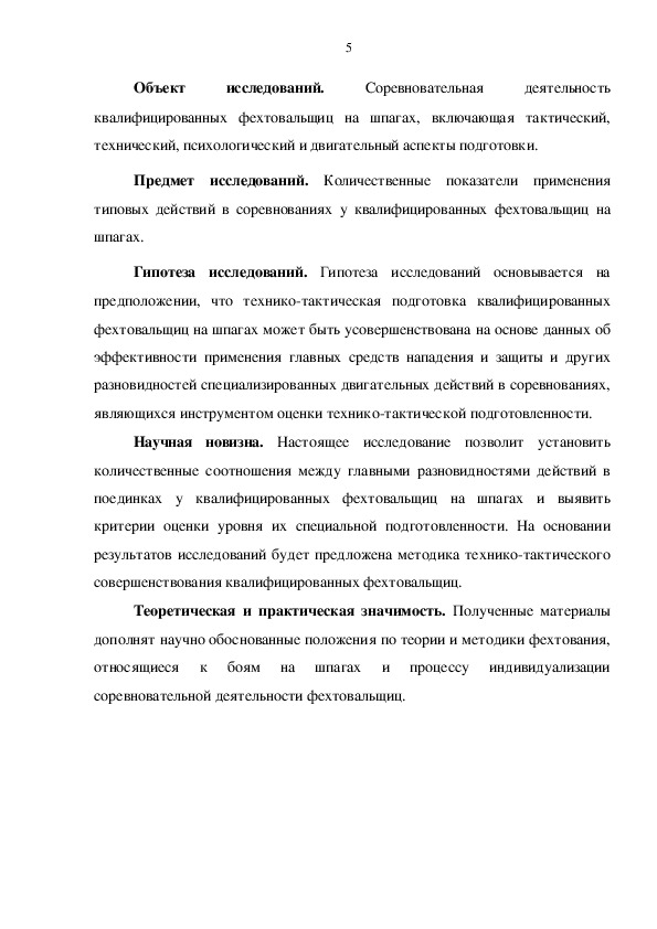 Ограниченность объективной информации о составе специализированных двигательных действий в соревнованиях между квалифицированными фехтовальщицами на шпагах обусловила необходимость научно-практических исследований для усовершенствования методики технико-тактической подготовки спортсменок. Кроме того, полученные данные позволят определить направленность индивидуализации при выборе средств и методов специальной тренировки.
