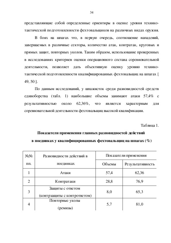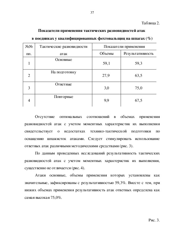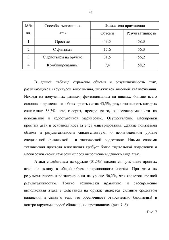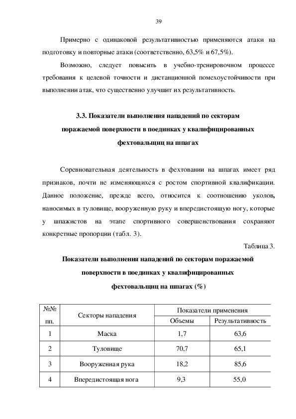 объему применения атак с действием на оружие. У отдельных спортсменок