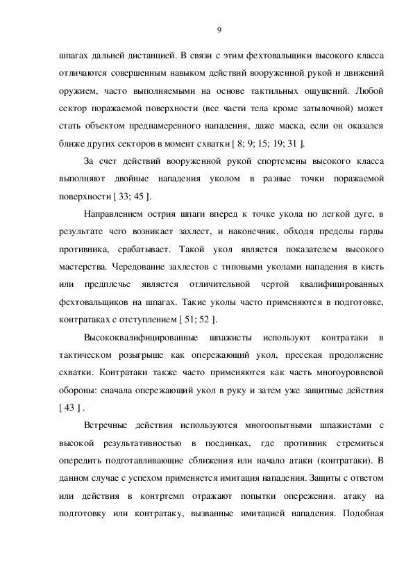 типовых действий в соревнованиях у квалифицированных фехтовальщиц на