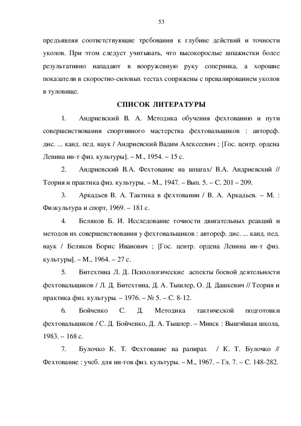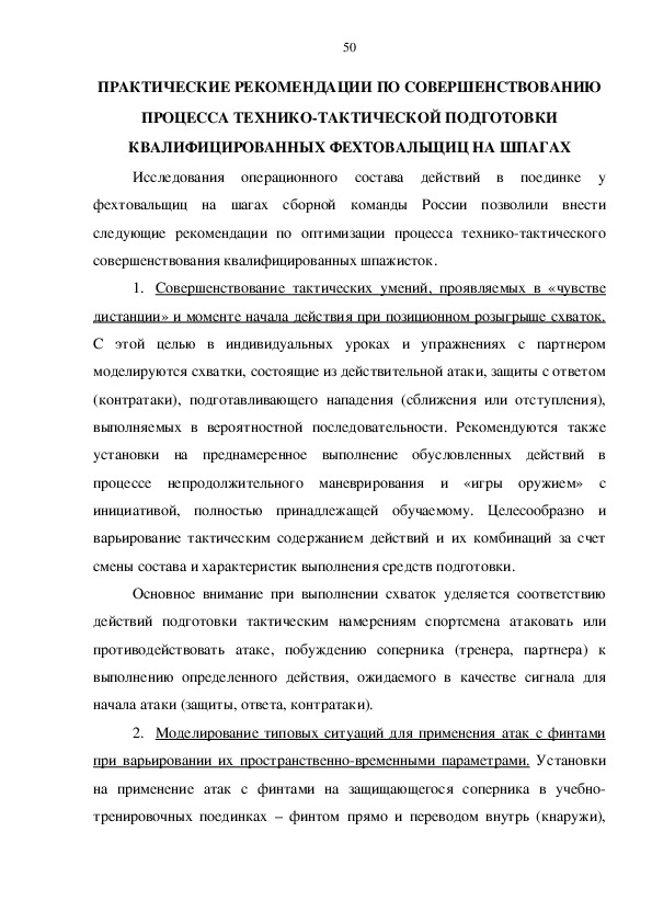 КВАЛИФИЦИРОВАННЫХ ФЕХТОВАЛЬЩИЦ НА ШПАГАХ ………. 48