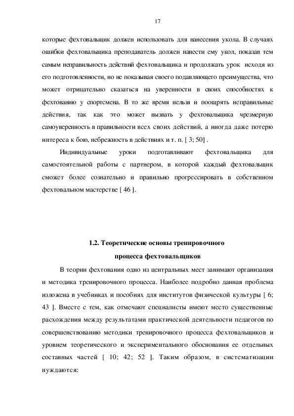 фехтовальщиков .…………………………………………………… 17