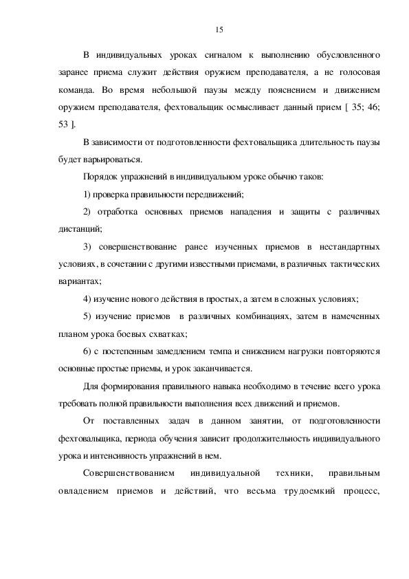 фехтовании индивидуализацию техники движений оружием и передвижений,