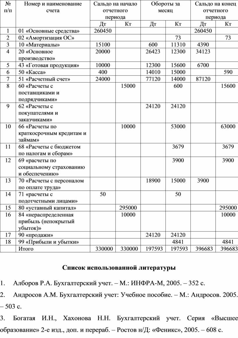 1. Алборов Р.А. Бухгалтерский учет. – М.: ИНФРА-М, 2005. – 352 с.