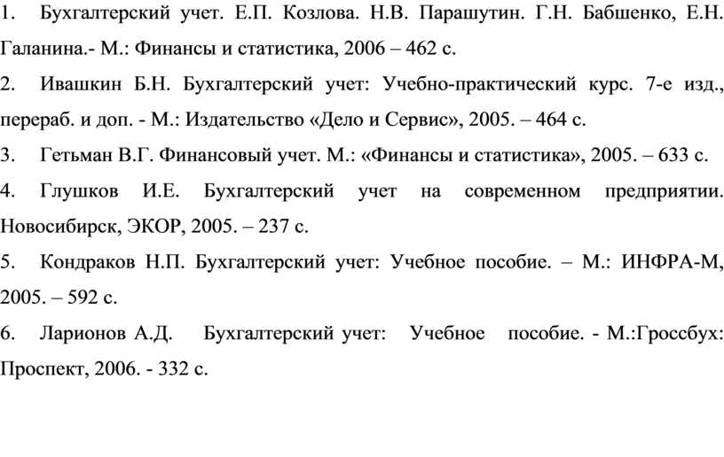 5. Ивашкин Б.Н. Бухгалтерский учет: Учебно-практический курс. 7-е изд., перераб. и доп. - М.: Издательство «Дело и Сервис», 2005. – 464 с.