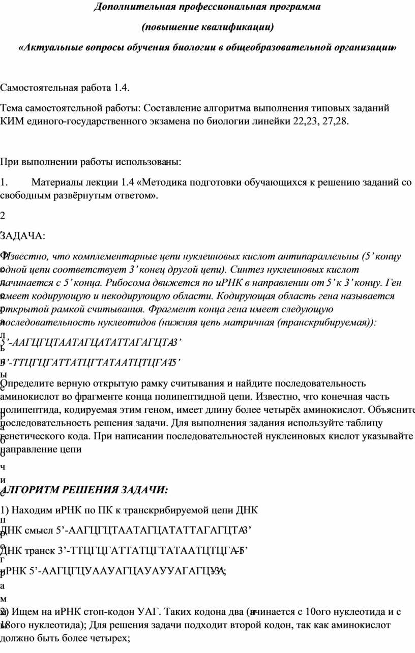 Тема самостоятельной работы: Составление алгоритма выполнения типовых заданий КИМ единого-государственного экзамена по биологии линейки 22,23, 27,28.