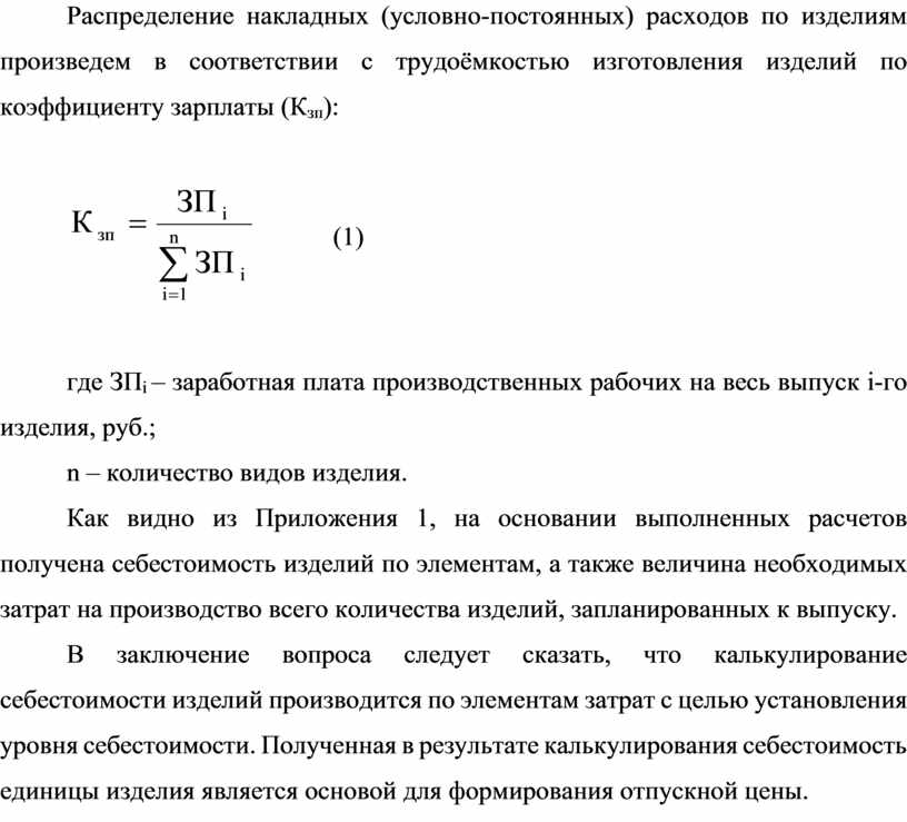 Распределение накладных (условно-постоянных) расходов по изделиям произведем в соответствии с трудоёмкостью изготовления изделий по коэффициенту зарплаты (Кзп):