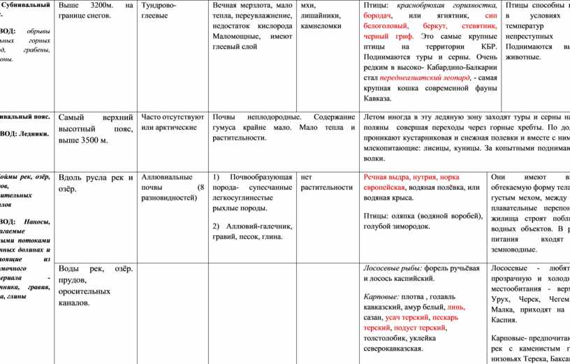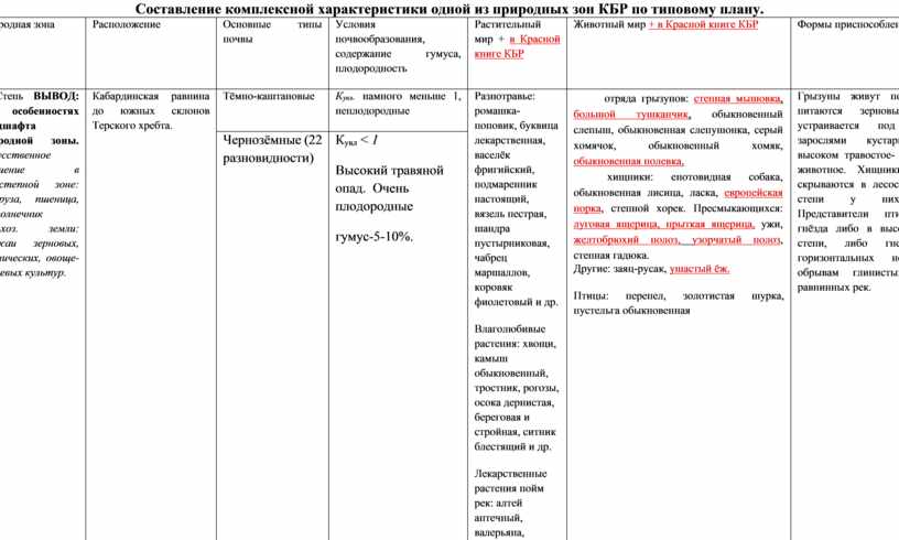Составление комплексной характеристики одной из природных зон КБР по типовому плану.