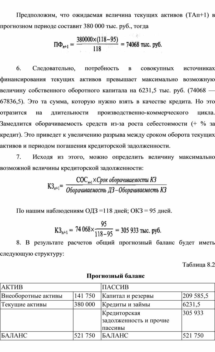 Предположим, что ожидаемая величина текущих активов (ТАп+1) в прогнозном периоде составит 380 000 тыс. руб., тогда