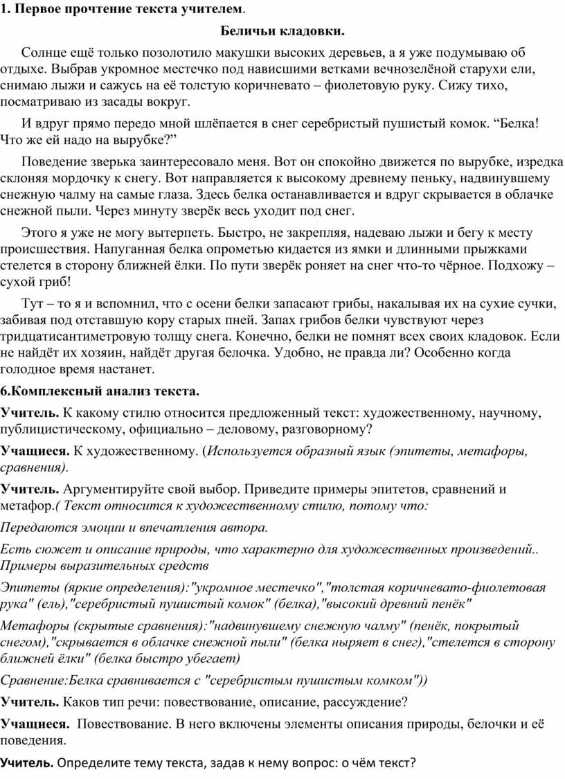 5. Работа с текстом С. Топоркова “Беличьи кладовки”.