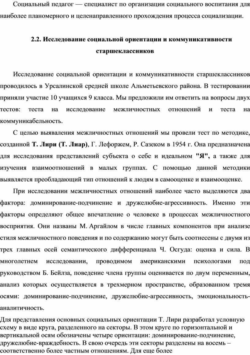 Практическая значимость исследования заключается в изучении социальной ориентации и коммуникативности старшеклассников. Результаты исследования могут быть использованы студентами в педагогической практике, а также учителями-предметниками, классными руководителями, социальными педагогами.